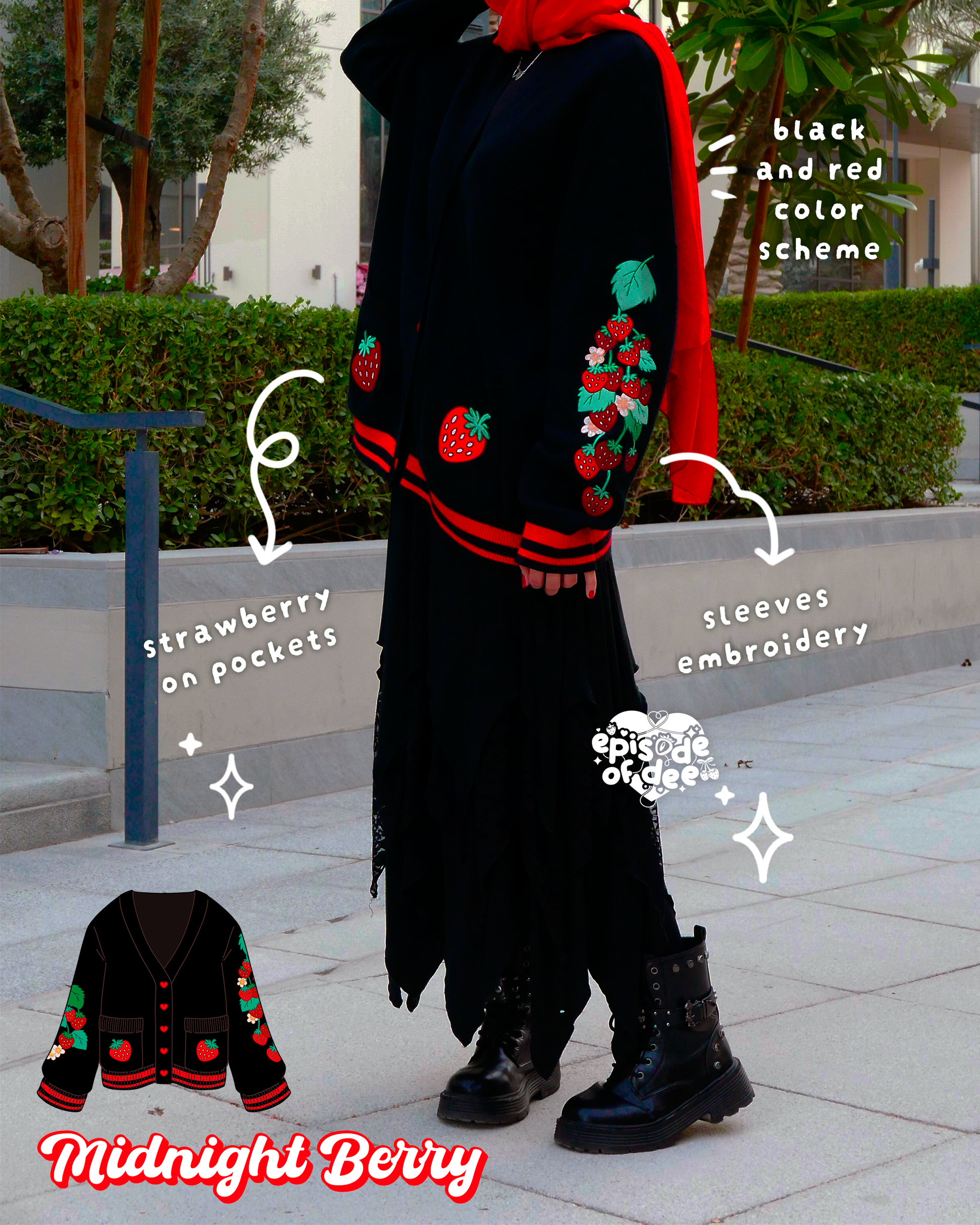 100% cotton cardigan, adorned with delicate strawberry embroidery, designed to bring a touch of sweetness and comfort to your wardrobe